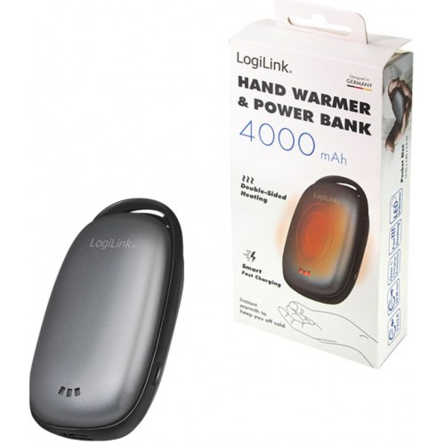 Handwarmer en powerbank in éénDubbelzijdige verwarming met drie instelbare temperatuurinstellingen (30°/37°/50°)Laadstatusindicatie via 3-LED's